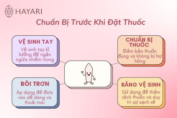 • Chuẩn bị viên đặt hoặc ống thuốc theo đơn bác sĩ: Nàng nhớ chuẩn bị đúng loại thuốc theo đơn của bác sĩ, kiểm tra kỹ hạn sử dụng và bao bì. Nếu là viên đặt, hãy giữ nguyên vỏ bọc cho tới lúc sắp đặt để đảm bảo vệ sinh. Nếu là ống thuốc bơm, kiểm tra xem pít-tông và đầu ống hoạt động trơn tru, không bị gãy hay hư hỏng. Chuẩn bị kỹ như vậy giúp nàng đặt thuốc dễ dàng, chính xác và tránh lãng phí thuốc.