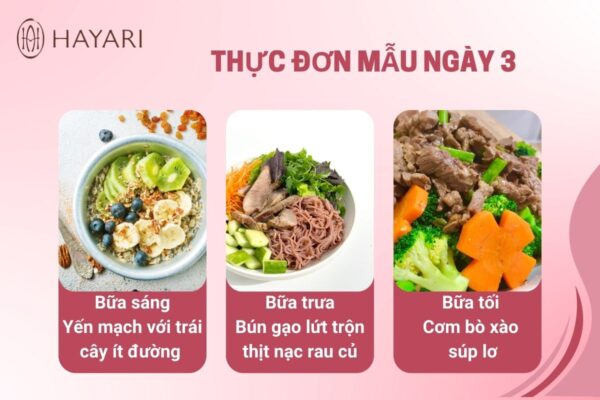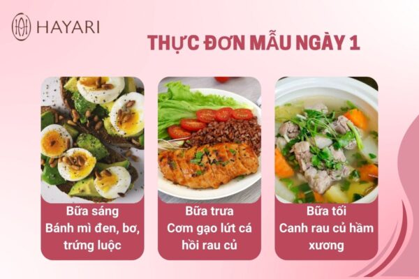 Dưới đây là gợi ý thực đơn mẫu 3 ngày (chị em có thể linh hoạt áp dụng trong 7 ngày):