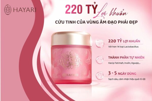 👉 Ngoài việc bổ sung qua thực phẩm tự nhiên, nàng cũng có thể chọn cách bổ sung lợi khuẩn trực tiếp để chăm sóc vùng kín hiệu quả hơn. Một gợi ý được nhiều chị em tin dùng chính là Feme Mati Pro – men phụ khoa Nhật Bản. Sản phẩm được thiết kế dạng hộp 45 viên tiện lợi, chứa tới 220 tỷ lợi khuẩn sống từ 22 chủng khác nhau, nhờ đó tạo nên “lá chắn tự nhiên” bảo vệ vùng nhạy cảm. Với công nghệ lợi khuẩn tiên tiến được nghiên cứu từ các chuyên gia hàng đầu Nhật Bản, Feme Mati Pro hoạt động như một “đội quân bảo vệ” thầm lặng: vừa ức chế vi khuẩn có hại, vừa phục hồi hệ vi sinh âm đạo về trạng thái cân bằng khỏe mạnh.
