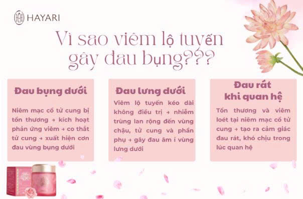 - 1. Viêm lộ tuyến có thật sự gây đau bụng dưới không? 👉 Có nhé, nàng ơi. Khi niêm mạc cổ tử cung bị tổn thương, cơ thể sẽ kích hoạt phản ứng viêm và co thắt tử cung. Chính điều này làm xuất hiện những cơn đau bụng dưới âm ỉ hoặc từng cơn, đôi khi khiến nàng nhầm tưởng chỉ là mệt mỏi hay sắp đến kỳ kinh thôi.